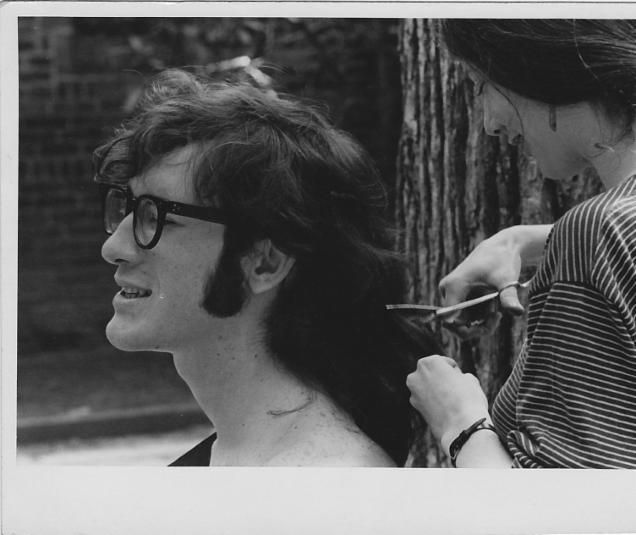 Here's a picture of Ralph getting his hair cut in the dorm courtyard at Yale, trying hard to make himself presentable to the draft board so he could obtain his C.O. status. Though he still looked a bit scruffy according to today's standards, I guess it worked.